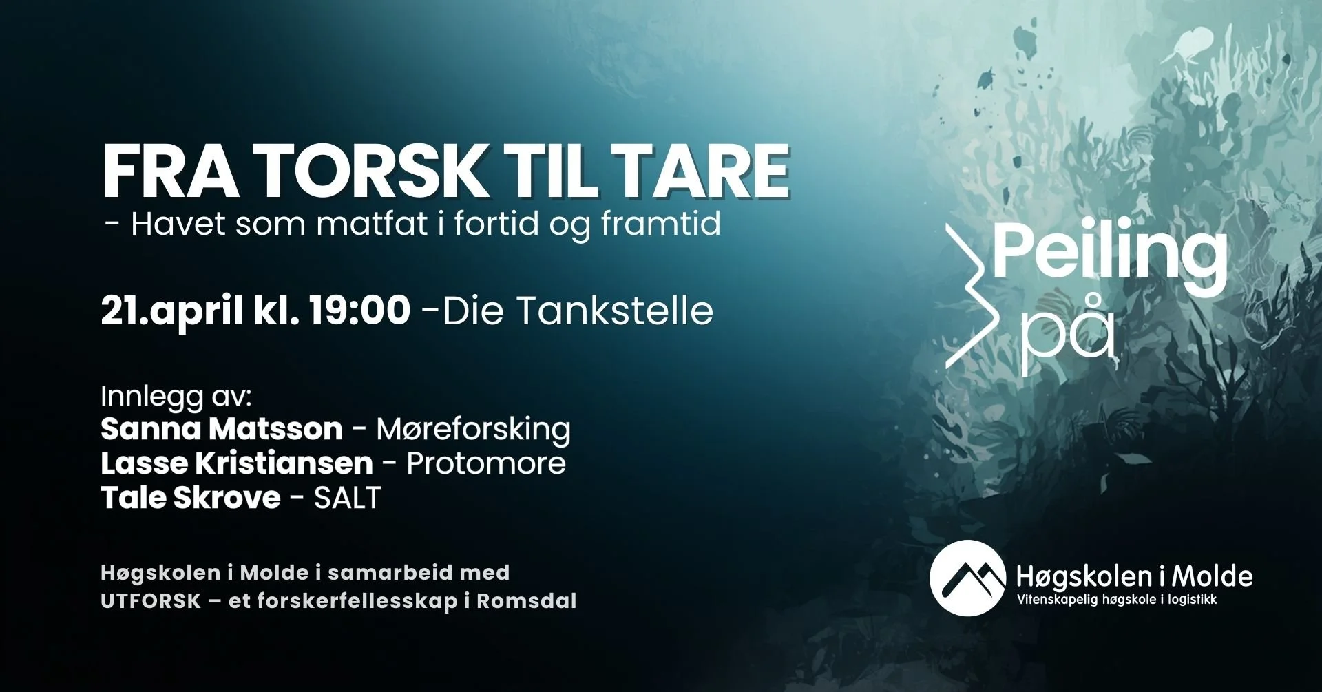 I Peiling på vil du møte forskere som deler av sin forskning på et vis som gjør deg litt klokere. Peiling på arrangeres av Høgskolen i Molde i samarbeid med Utforsk - et forskerfellesskap i Romsdal.